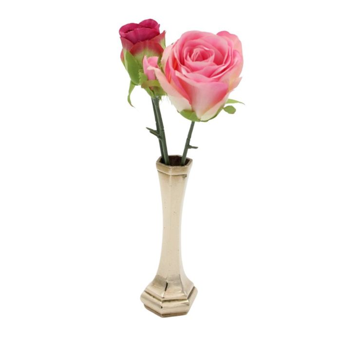 Dit smalle vaasje is een echte sfeermaker met een tijdloze uitstraling. De slanke vorm en klassieke voet geven het vaasje een elegante look, terwijl de goudkleurige afwerking zorgt voor een warm accent in je interieur. Perfect voor een paar losse bloemen, een roos of een klein takje. Juist door het smalle model komt alles mooi tot zijn recht. Zet ‘m op een nachtkastje, vensterbank of in een open kast: klein van formaat, maar groots in uitstraling. Invouwen