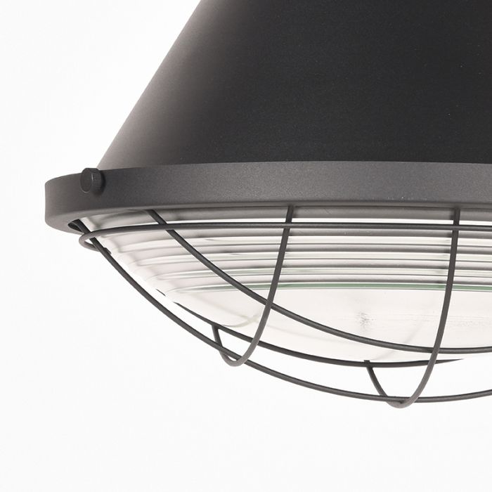 Hanglamp Duisburg is een grote, robuuste lamp, uitgevoerd in de kleur zwart, geïnspireerd op de ouderwetse fabriekslamp.