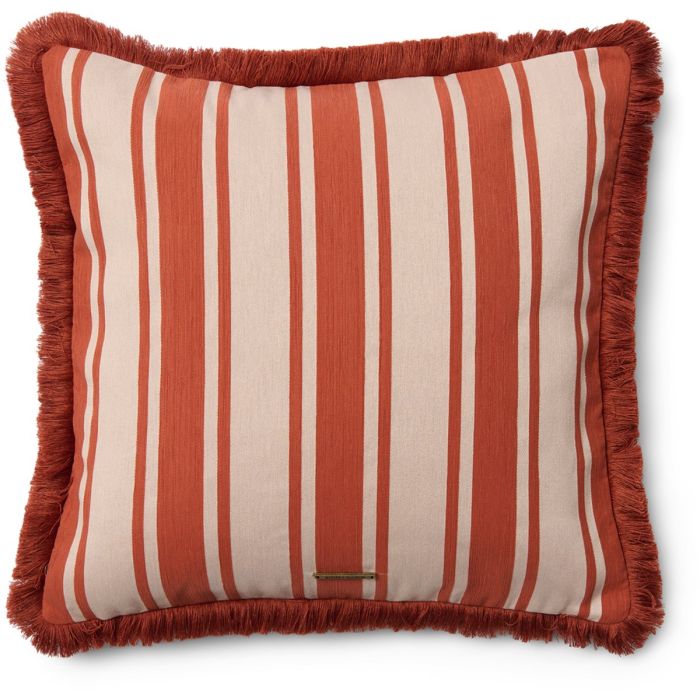 Geef je interieur een frisse en stijlvolle uitstraling met deze elegante Rivièra Maison kussenhoes. Het klassieke streeppatroon in warme roze/roodtinten en crème zorgt voor een tijdloze, maar tegelijkertijd speelse look. Het kussen is afgewerkt met een sierlijke franjerand rondom. plaats dit kussen op de bank, fauteuil of bed voor extra comfort én een decoratieve touch. Dankzij de warme tinten brengt het direct sfeer in de woonkamer of slaapkamer. Invouwen