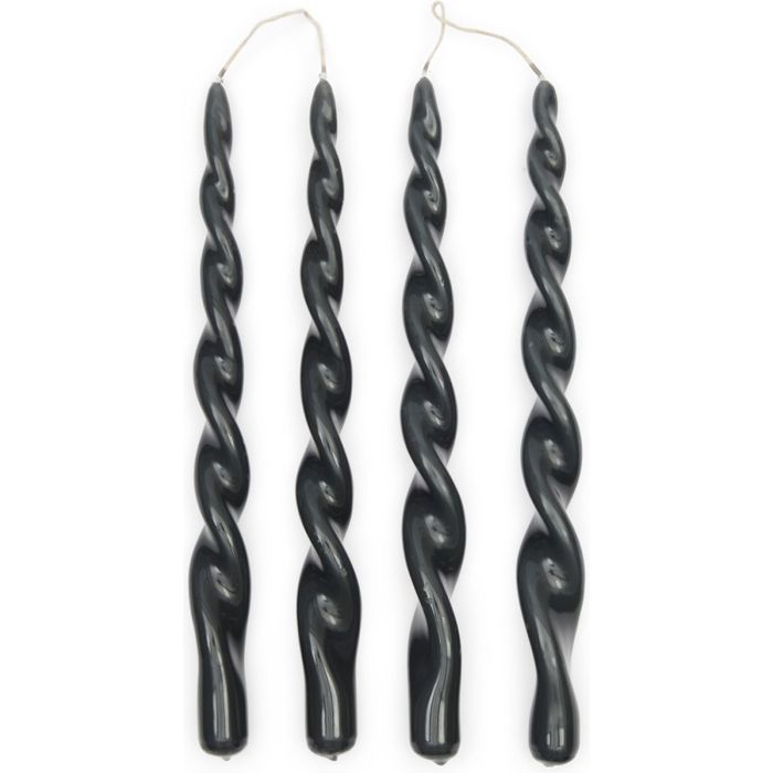 Rivièra Maison Twisted dinerkaarsen zwart/glossy gedraaid 30 cm (4 Stuks)