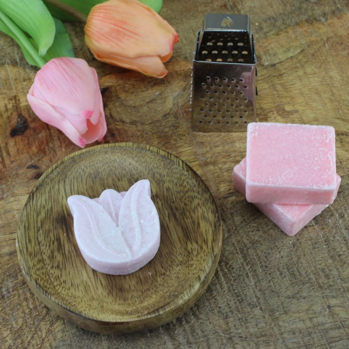 Rose/ Tulp perfume geurblokjes / amberblokjes set, houten schaaltje, rasp
